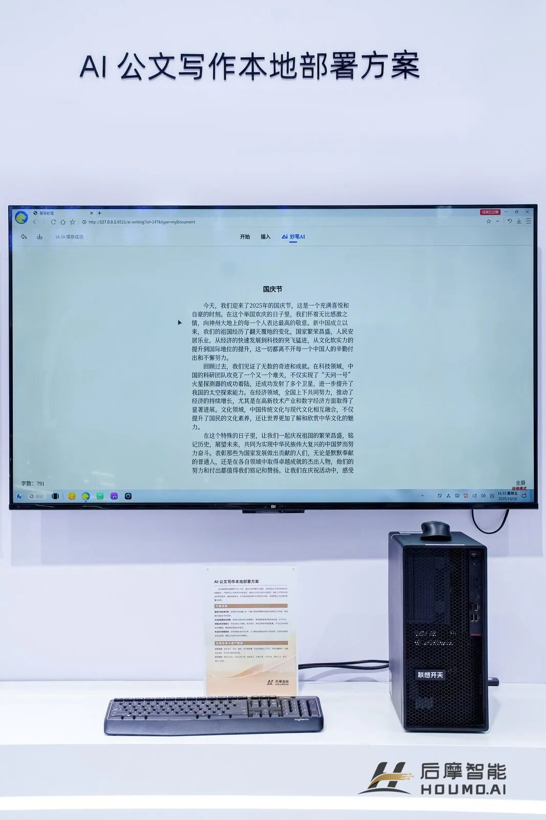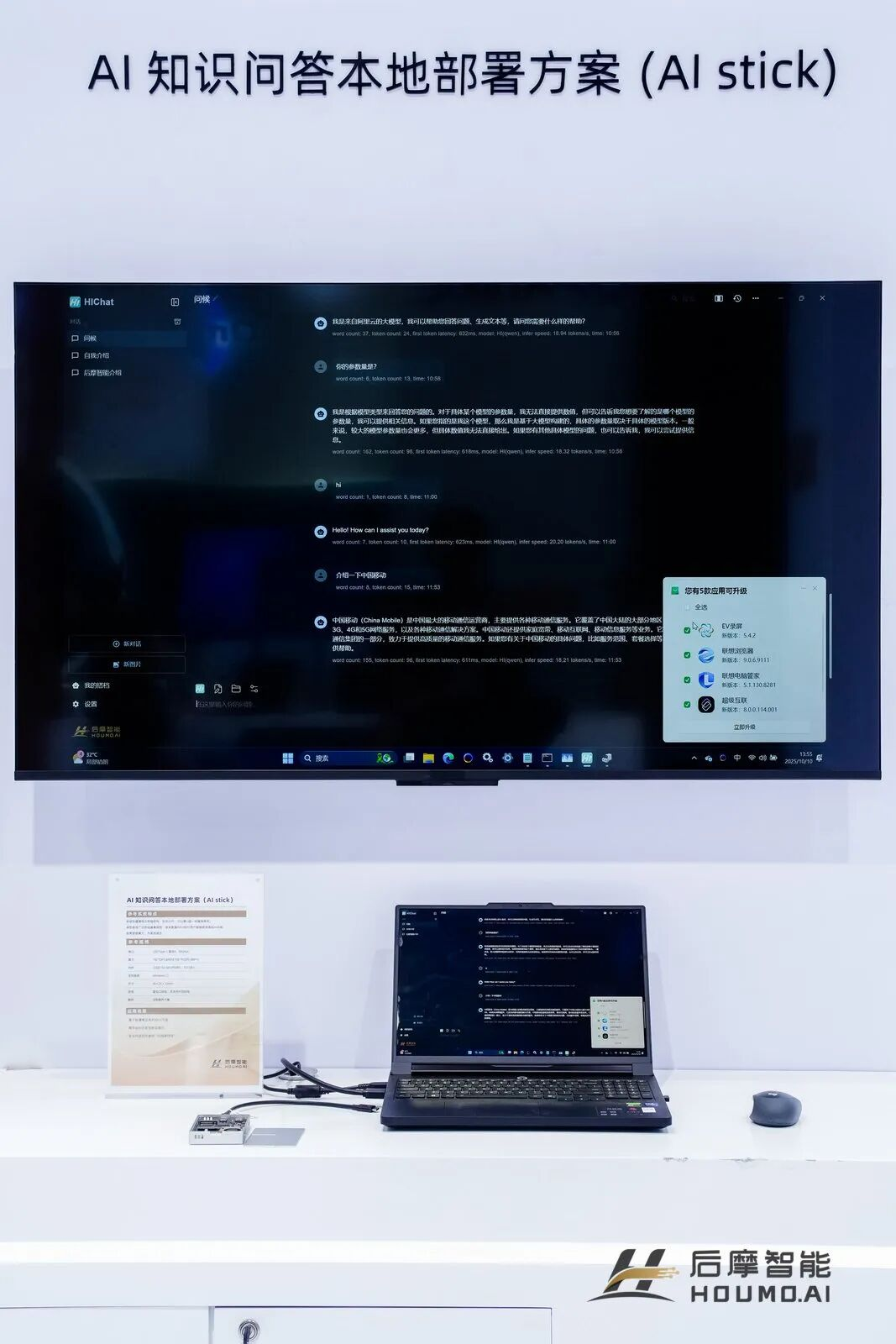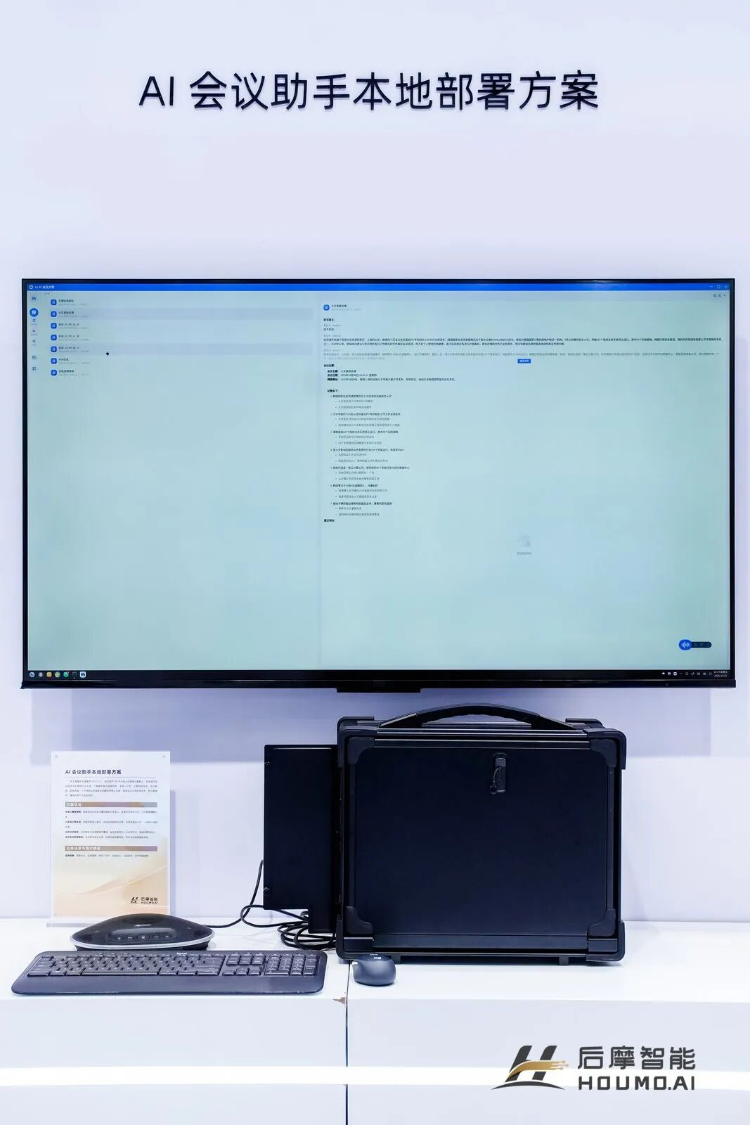 展会现场,后摩智能系统展示了包含AI会议助手本地部署方案在内的六大场景解决方案:
