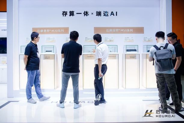 此次展会,后摩智能展出覆盖「芯片-模组-终端」的完整产品矩阵,瞄准的正是端边算力需求全场景覆盖。其中最引人瞩目的当属核心旗舰后摩漫界®M50,这款极致能效比的端边大模型AI芯片一经发布,便以卓越性能吸引了广泛的关注。